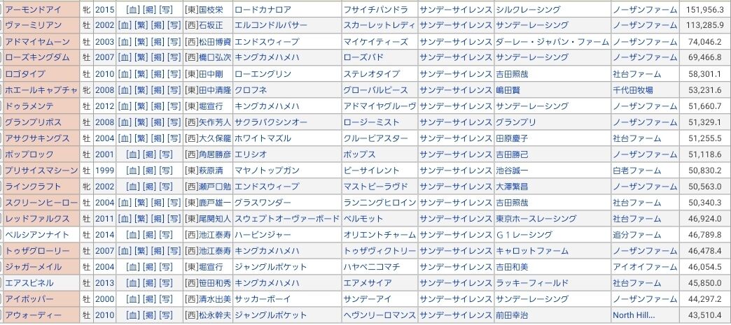 コレ見たら母父サンデーって特に父も関係なく強い馬出せるし凄いよなぁ