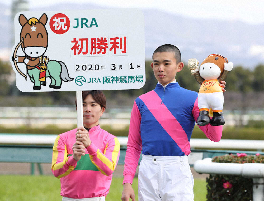 同着相手の新人騎手泉谷くん初勝利セレモニーで