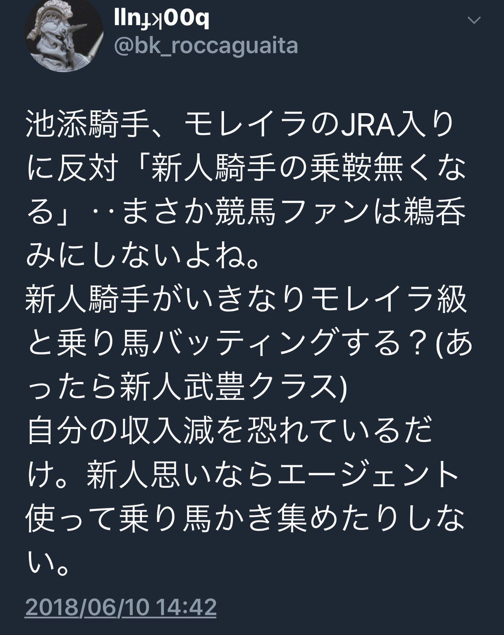 競馬関係者が、池添がこう言ってたとツイートしてる
