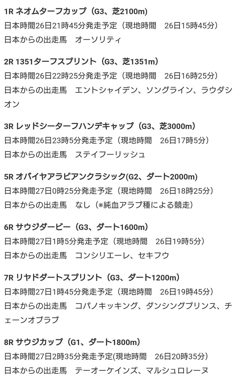 【今夜21時30分~】サウジカップデー【日本馬12頭全レース出走時間・詳細がこちら】