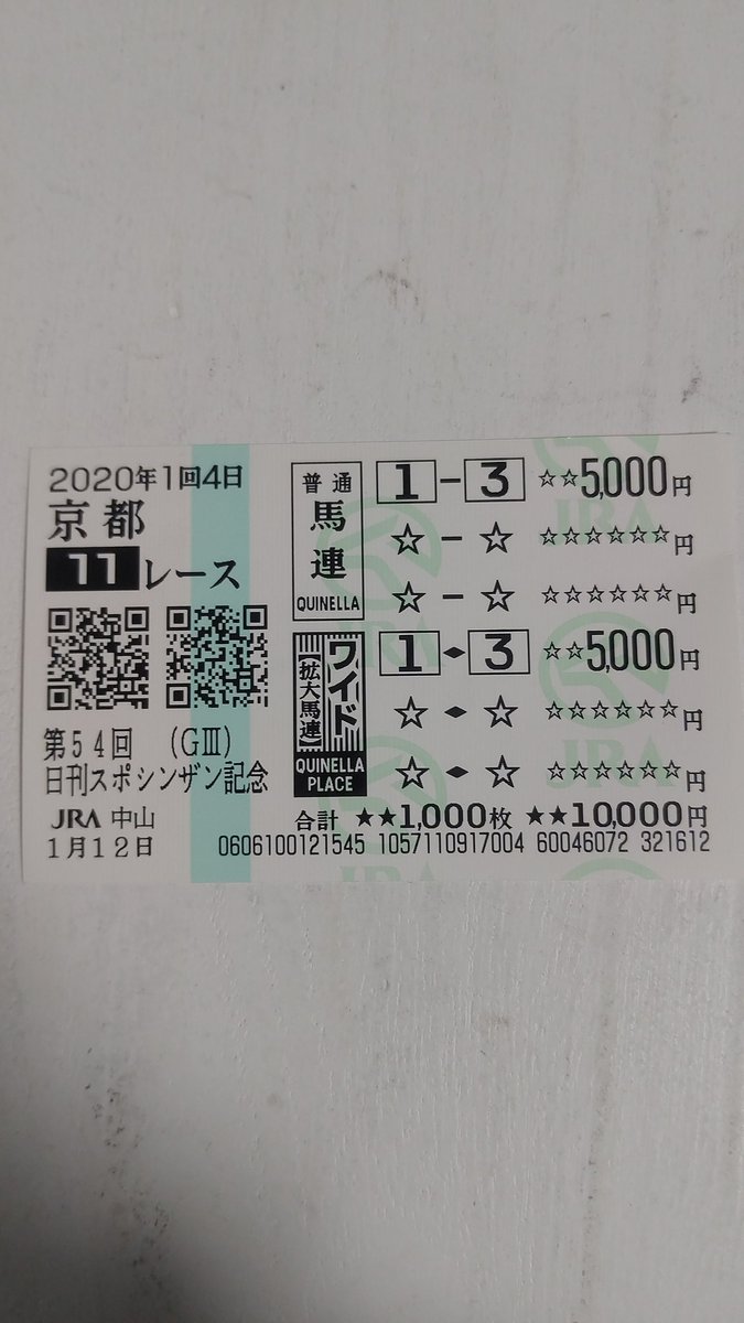 【天才】キャプテン渡辺さん、シンザン記念的中で24万円獲得
