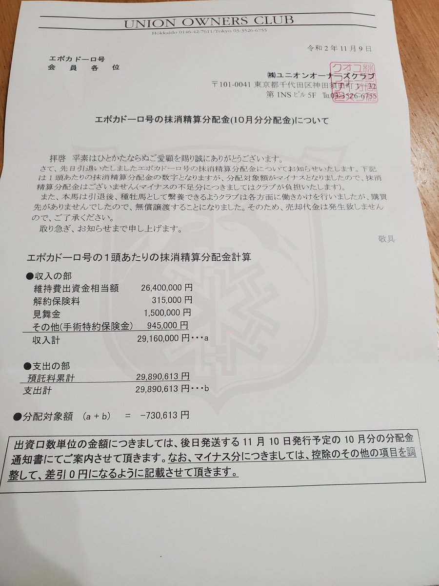 引用元: ・【悲報】エポカドーロ、種牡馬で買い手がつかず無償譲渡。引退清算がマイナス。