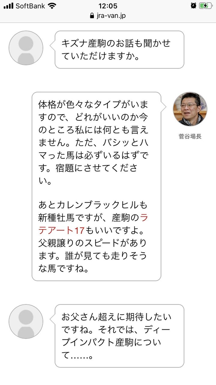 キズナ産駒のお話も聞かせていただけますか。