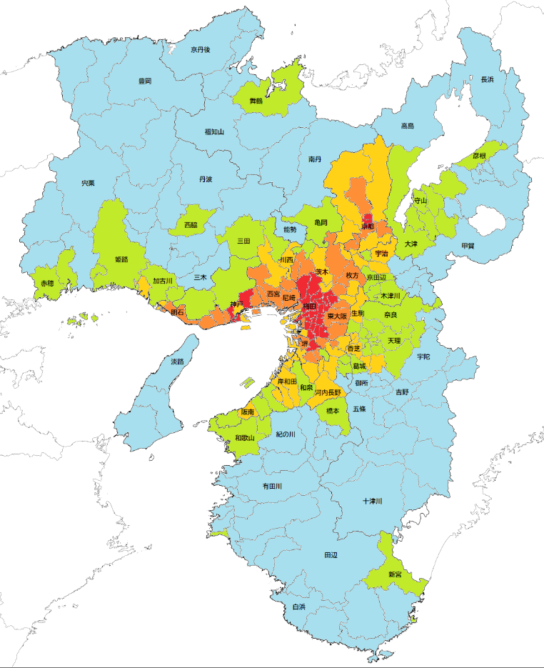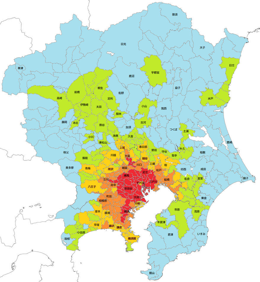 【悲報】関東と関西の人口密度を比較してみた結果wwwwwwwwwwwwwwwwww