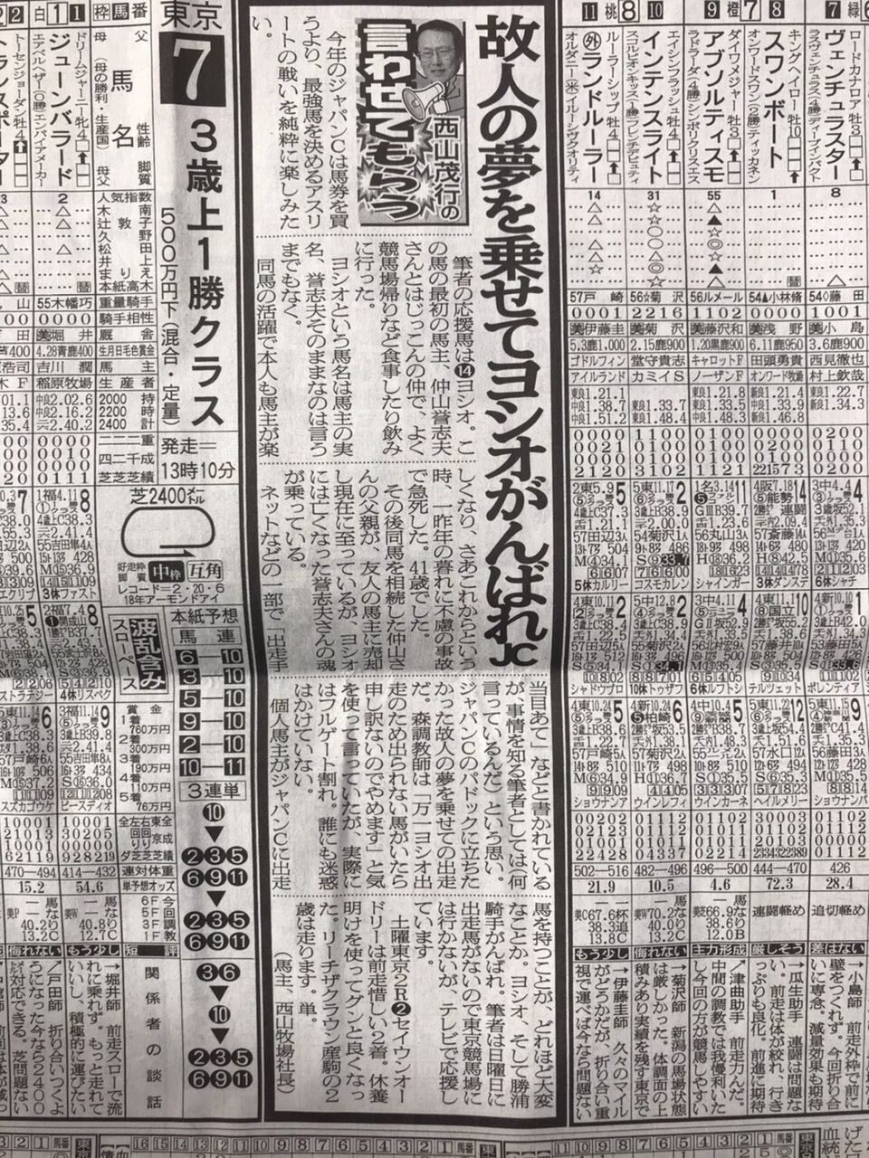 森「18頭立ての大外枠でもいい。賞金もいらない。他の馬の邪魔もしない。だからヨシオをジャパンカップで走らせてくれ。そうすれば、どの馬が一番強いかわかる」