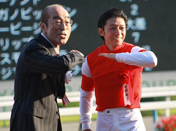 吉田照哉がお笑い芸人と同じポーズ決めてるやつもいいよね
