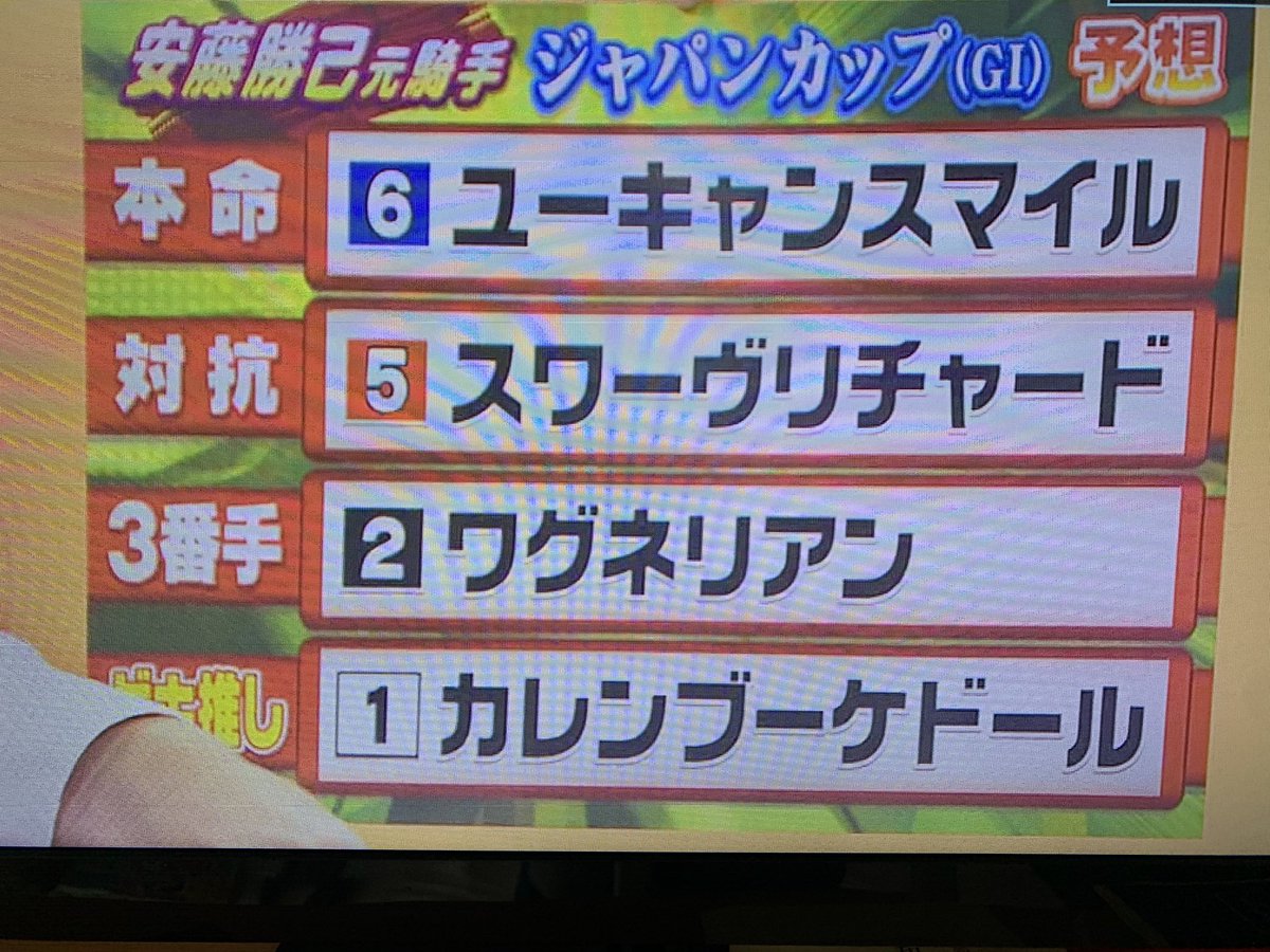 ジャパンカップ、アンカツさんと全く予想一緒だ。 ワグネリアンは馬場状況によってだなぁ。