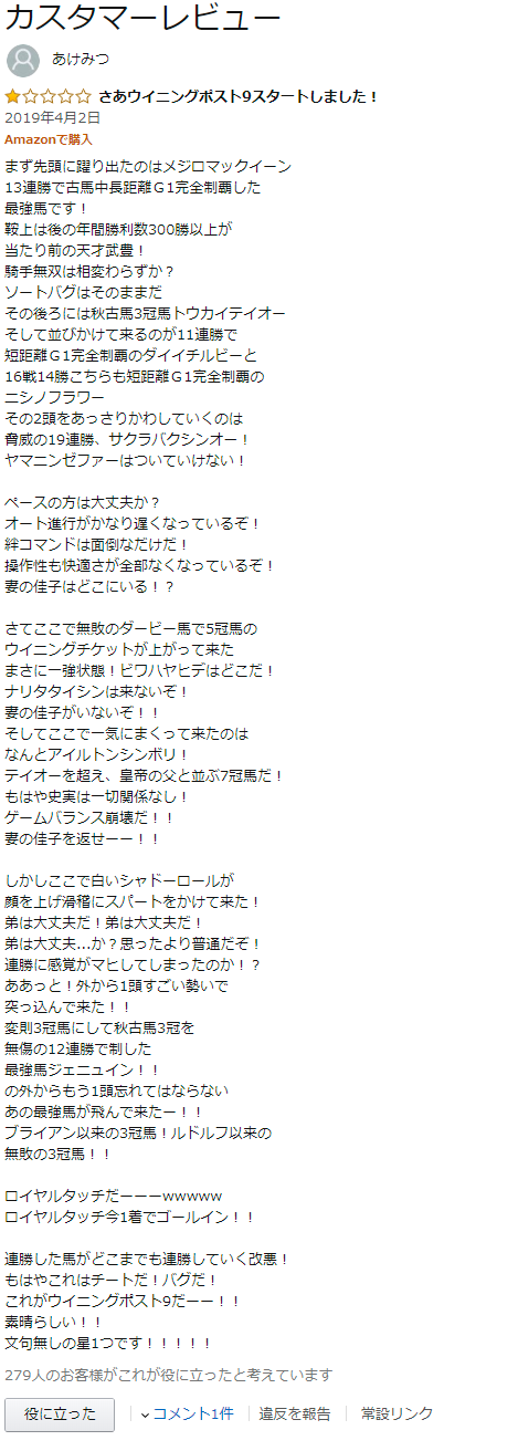 【競馬】ウイニングポスト9のAmazonレビューワロタ