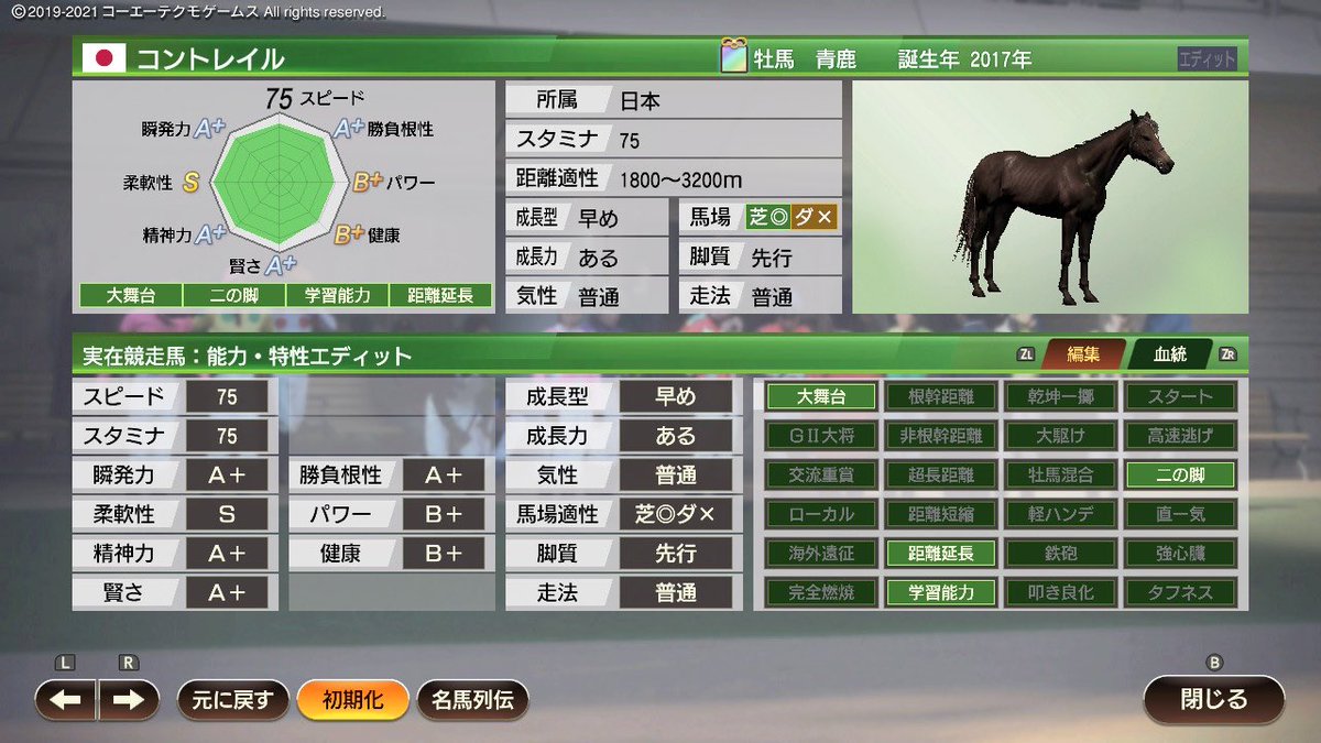 【競馬】ウイポ2022のコントレイルが強すぎる件について