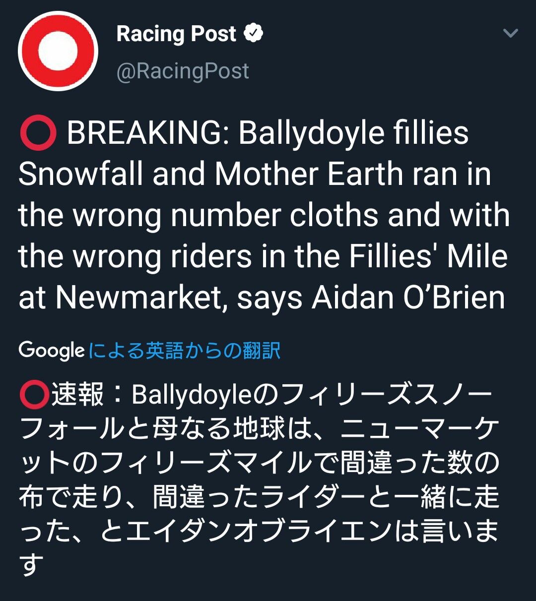 【競馬】オブライエン、また壮大にやらかしてしまう・・・【衝撃】