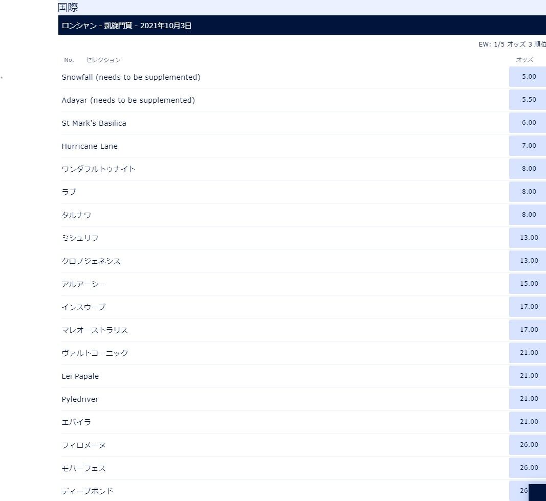 【競馬】キングジョージ結果反映後の凱旋門賞オッズwwwwwwwwwwwwwwwwww