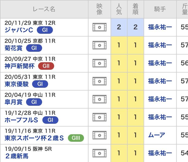 菊花賞までこの馬柱で1番人気じゃないところがやっぱ今回のJCの凄さを物語ってるわw