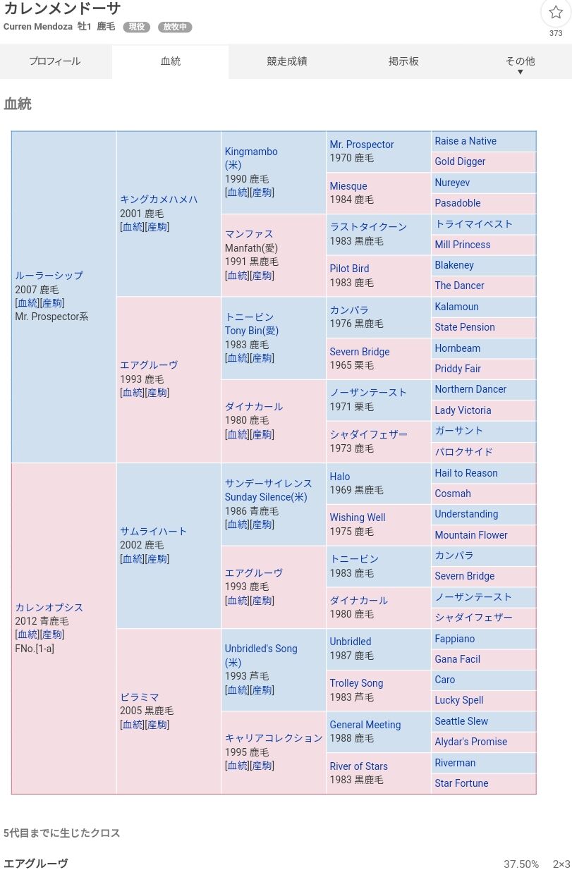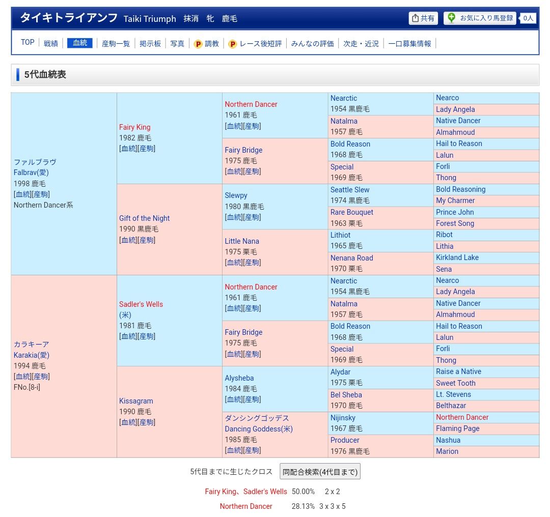 5代血統表に漢字の馬がいる馬すき