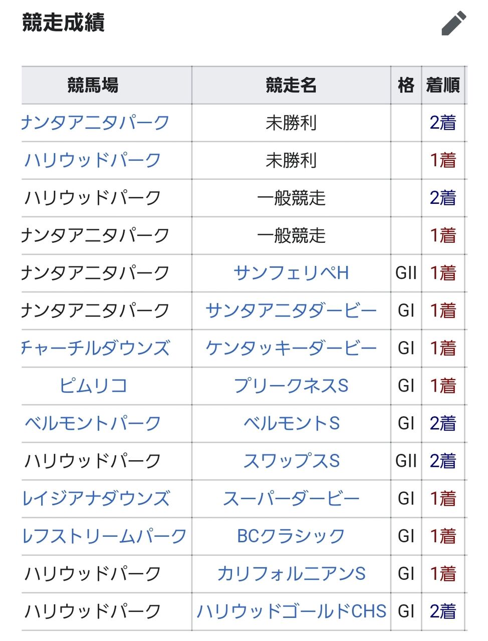 ちゃんとカッコ付けで1着馬2着馬書いとけば更に見栄え良くなるぞこの表