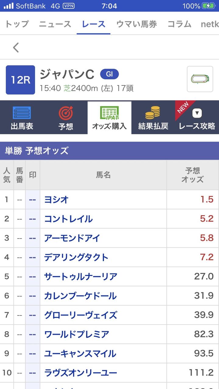 【競馬】ジャパンカップ前売りオッズ予想、まさかのあの馬が3番人気にwwwwwwwwwww