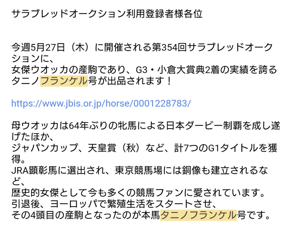 【競馬】タニノフランケル、サラオクに出品されてしまう