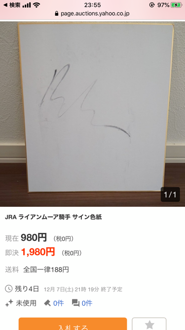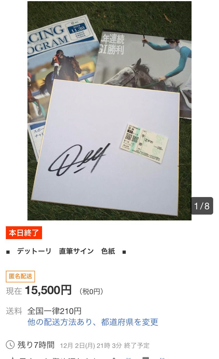 デットーリ騎手のサインが「ヤフオク!」に出品されていました。