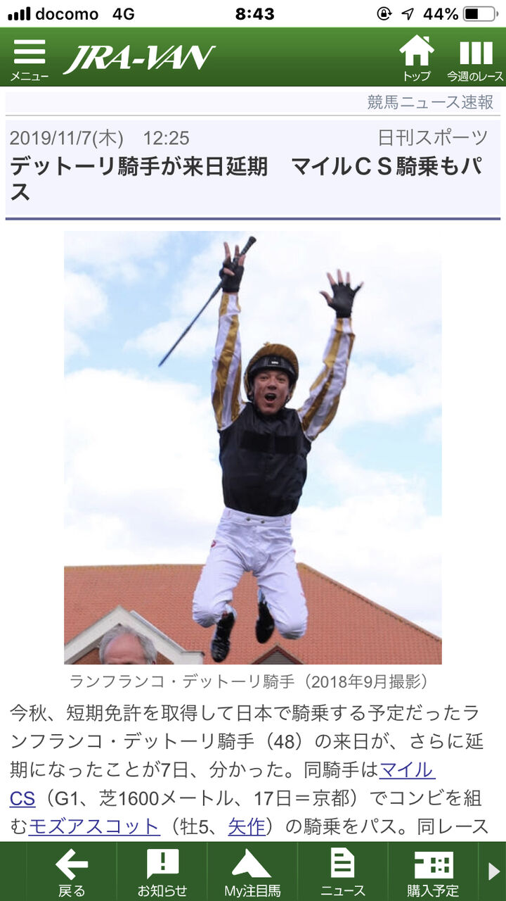 【競馬】デットーリ来日しない可能性が出てきたぞ!