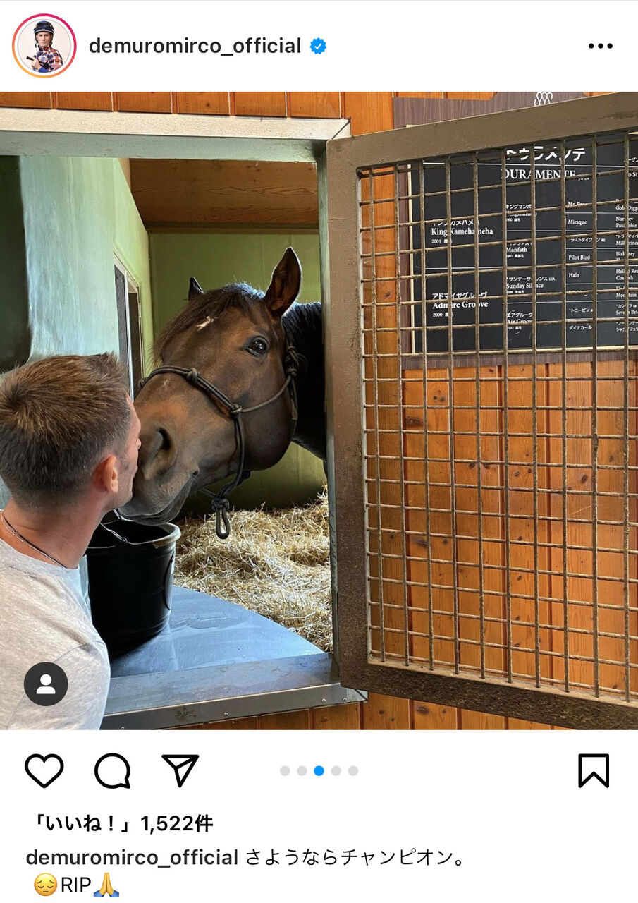 【競馬】デムーロのインスタ「さようならチャンピオン。」