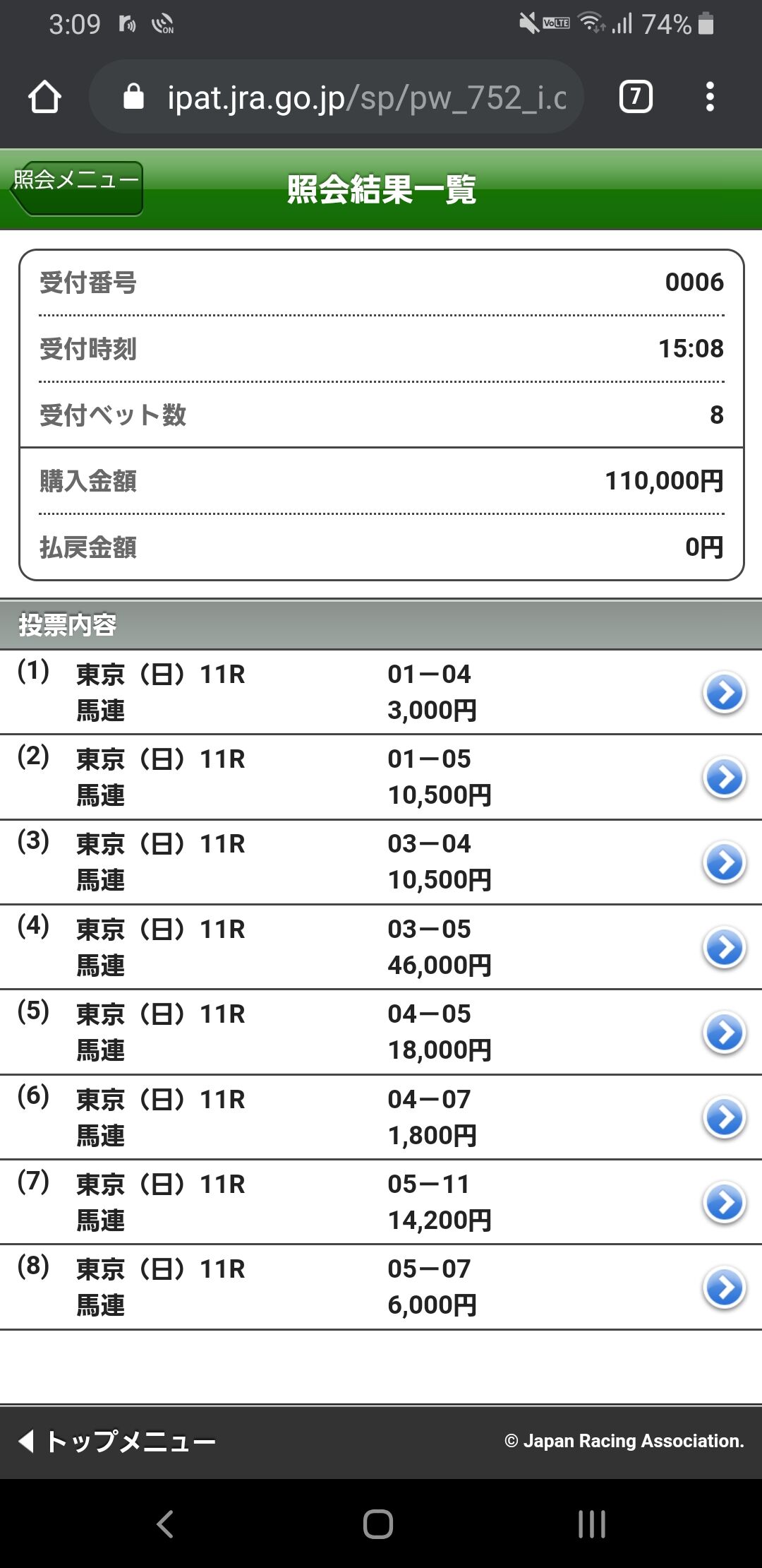 馬単100円だけゲット