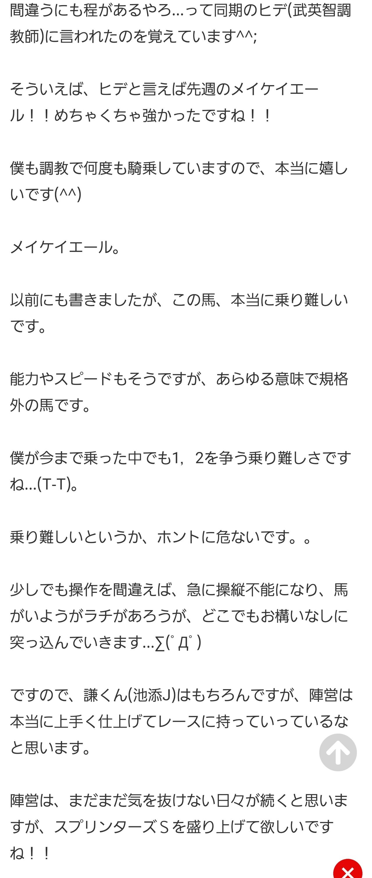 池添がゲート嫌がったとかそれくらいどうでもいいだろって言ってたのがわかったわ