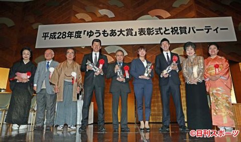 「ゆうもあ大賞」表彰式で記念撮影を行う受賞者と関係者