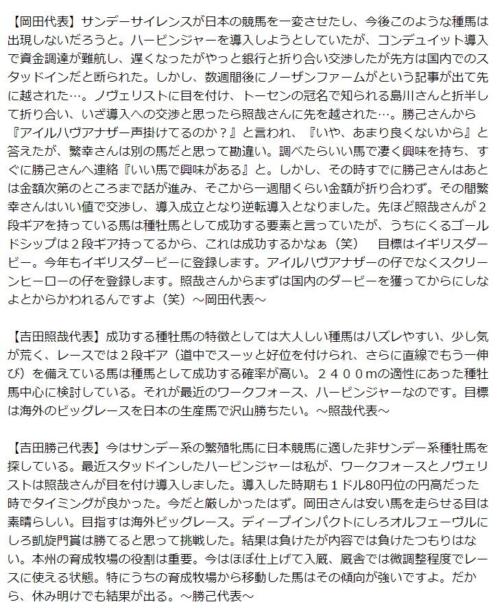 引用元: ・吉田勝己「ハービンジャーは私が、ワークフォースとノヴェリストは照哉さんが導入しました」