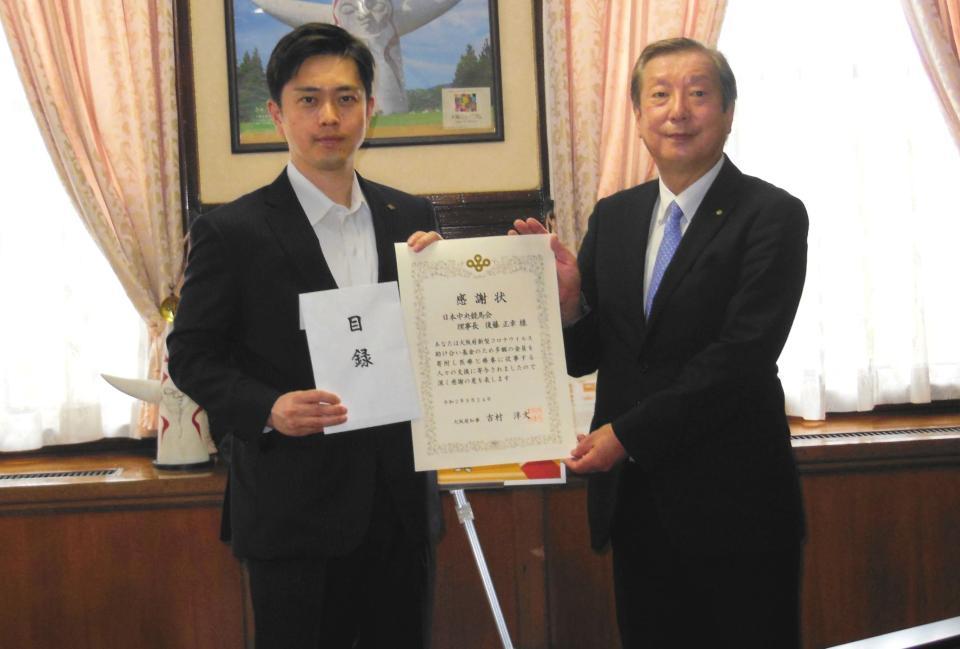 吉村洋文知事(45)は「多額の寄付を頂き、ありがとうございました。中央競馬を通じて、競馬ファンの皆さんのおかげでもあります。