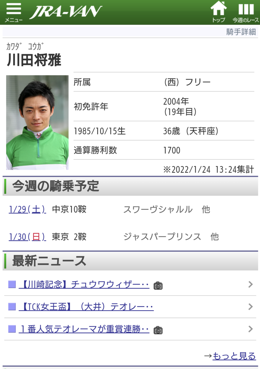 【競馬】川田ジョッキーの今週土日鞍上数・・・