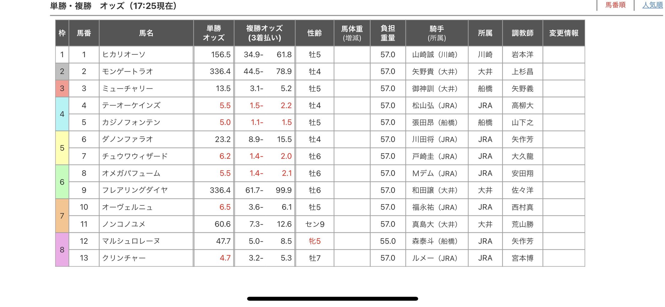 オメガカジノチュウワの3連複売れすぎやろ
