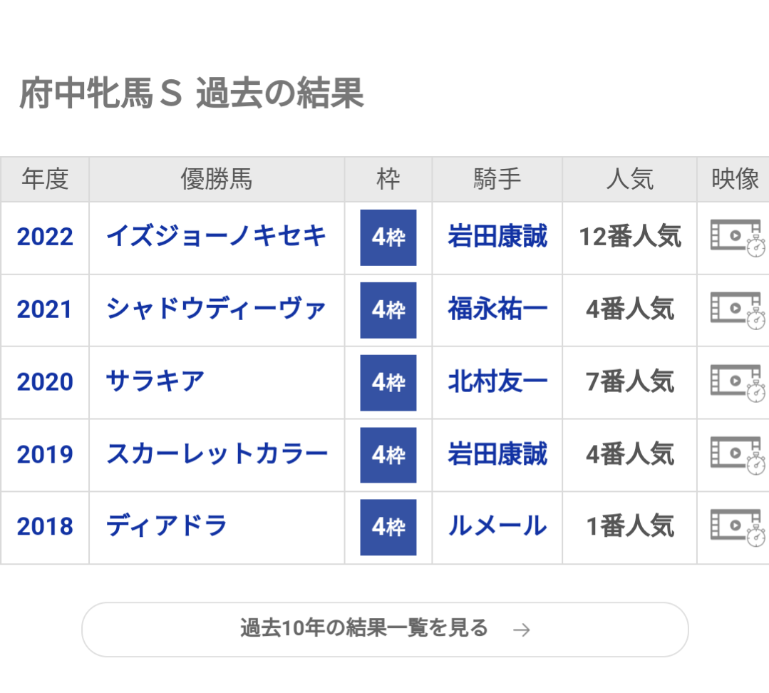 【競馬】府中牝馬S、何故か4枠が5連覇中ちなみに3歳馬の連対は過去10年でスイートサルサの3着のみだが出走時代が少ないので気にする必要はなさそう
