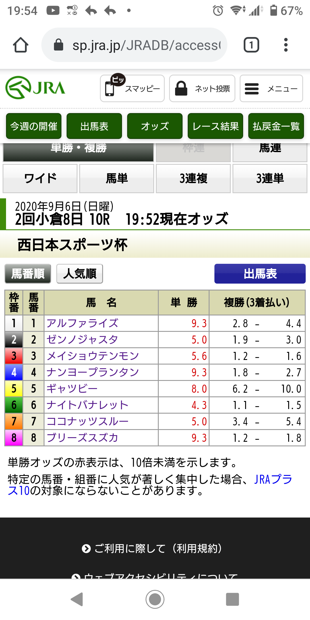 【競馬】明日の小倉10レースのオッズ、ガチでヤバイwwwwwwwwwwww