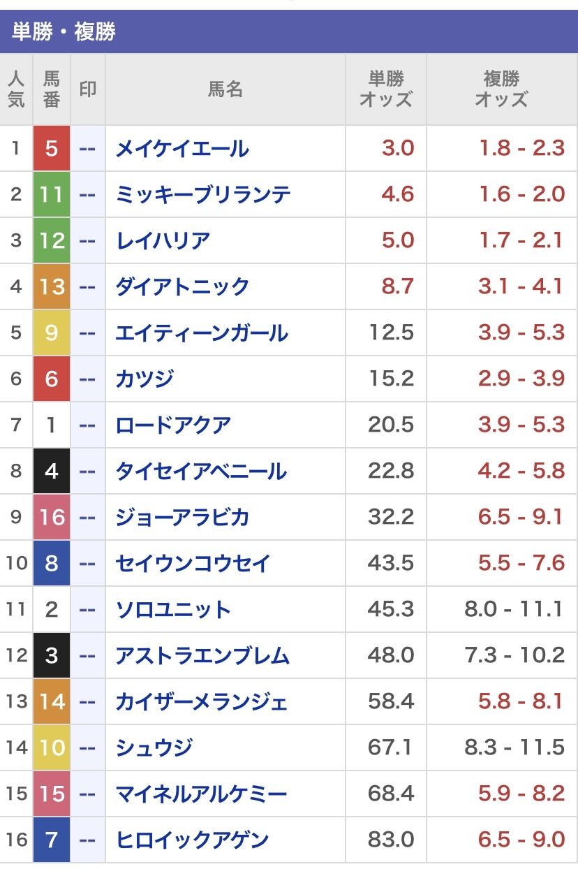 1番人気で3倍とか買ってる人間の不安心理が出てて草
