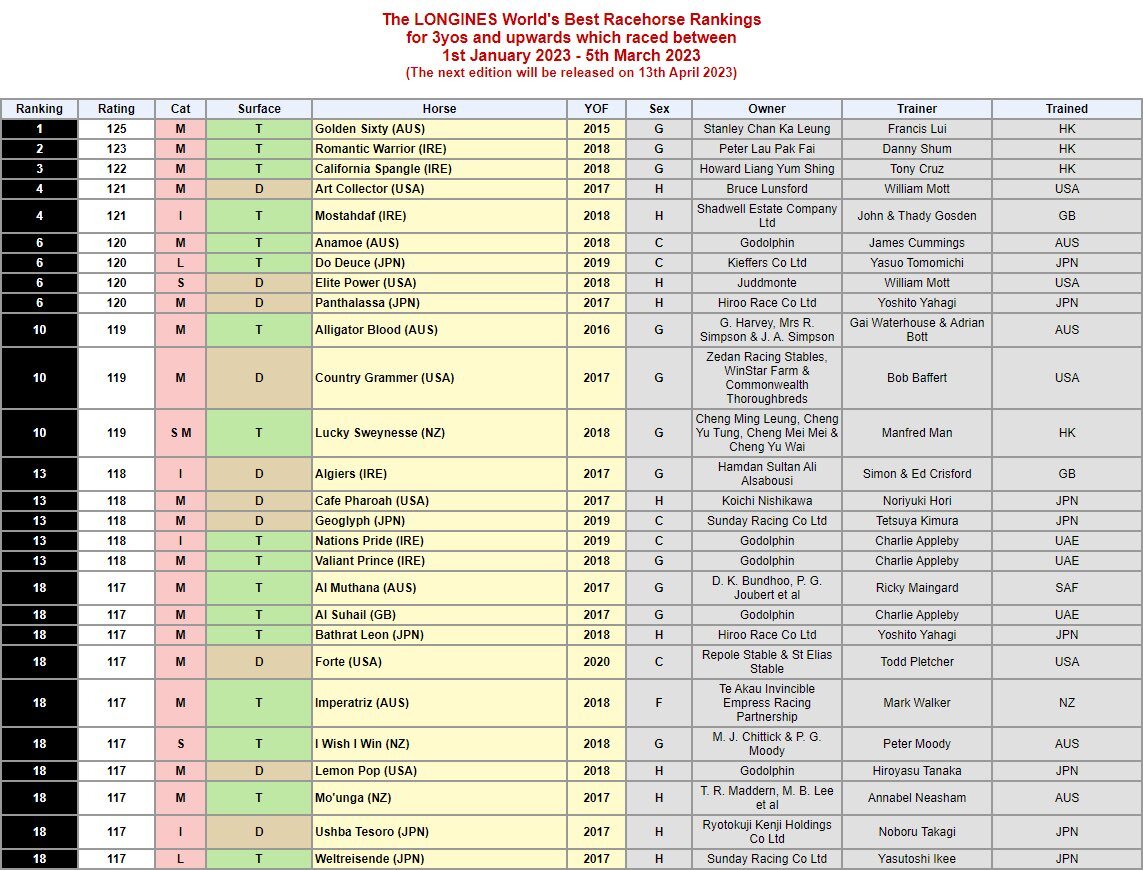 【競馬】最新のレーティング出てるんだけど、とんでもない事になってる・・・・