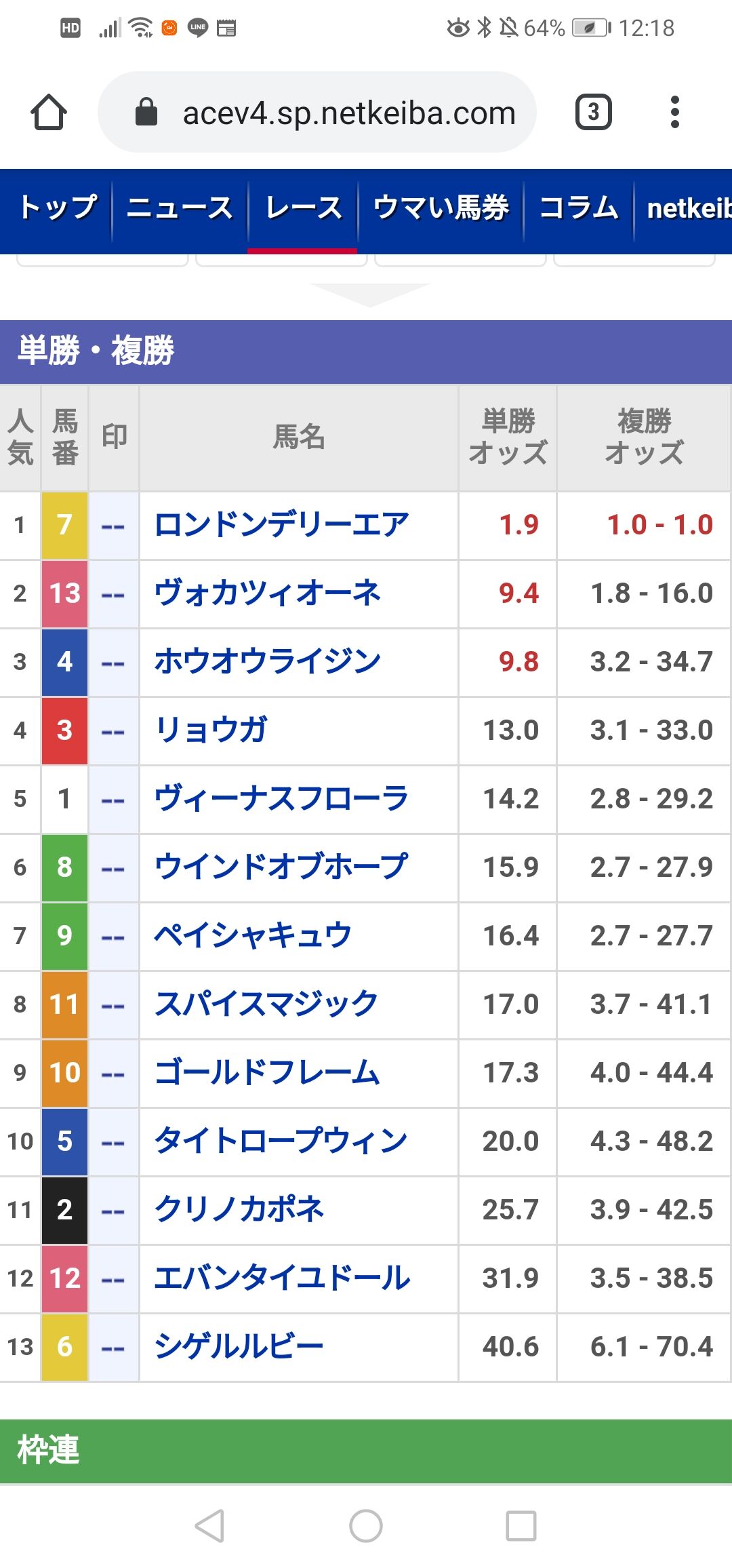 【競馬】札幌12レースのオッズが頭おかしいことになっててワロタwwwwwwww