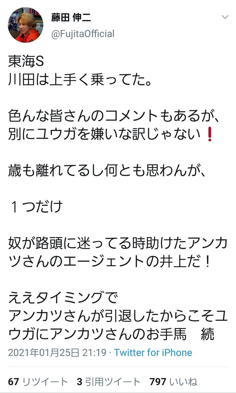【競馬】漢・藤田氏「俺は川田が嫌いなわけじゃない!」<br />