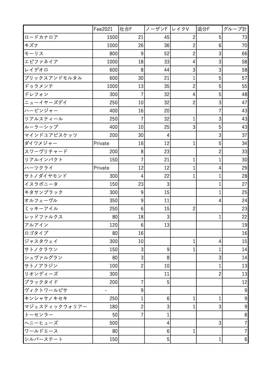 引用元: ・社台グループの2020年種付頭数