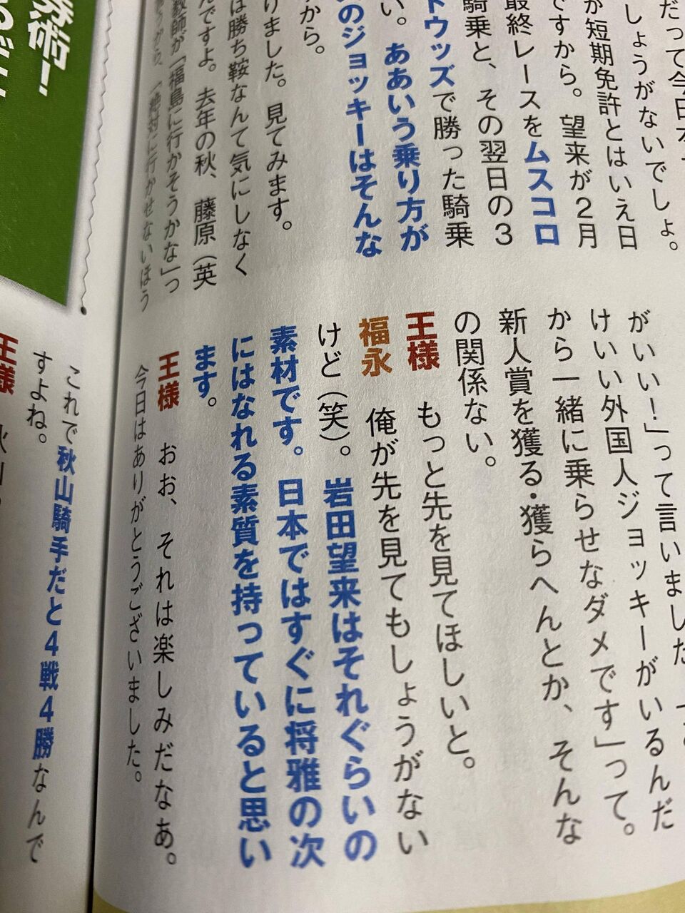 【競馬】福永騎手「岩田望来は凄い。日本ではすぐに将雅の次になれる素材を持っている」
