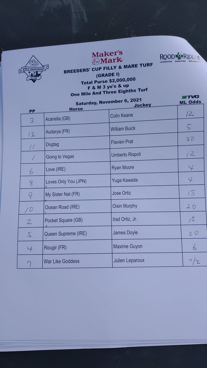 7R ブリーダーズカップフィリー&メアターフ(G1) 芝2200m・牝馬限定