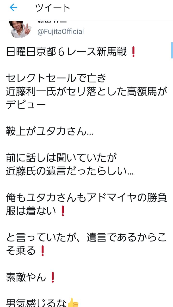【競馬】藤田伸二、感動ツイート「俺もユタカさんもアドマイヤの勝負服は着ないと言っていたが、遺言であるからこそ乗る!素敵やん」