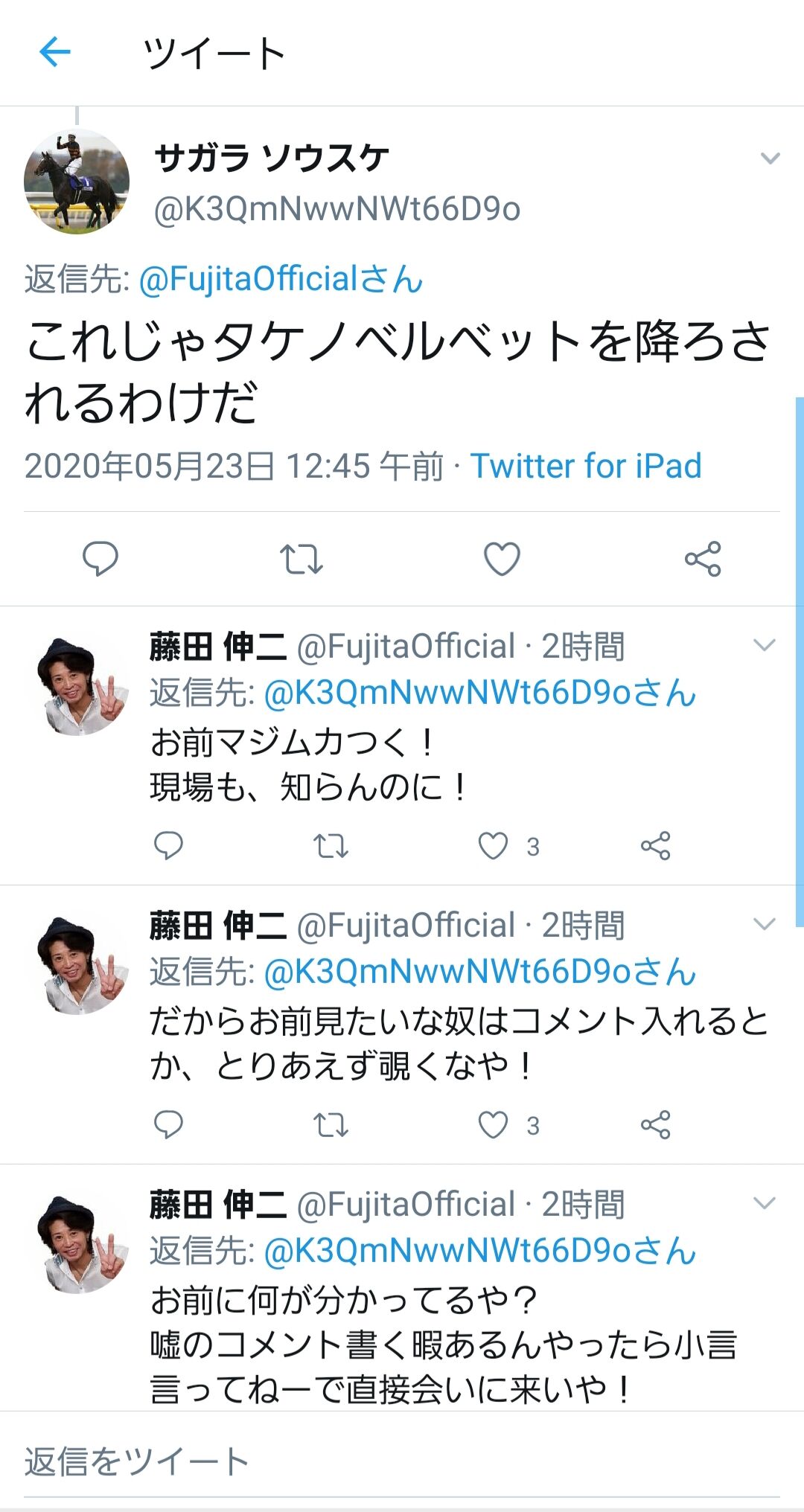 【競馬】藤田伸二さん、またTwitterでブチギレ