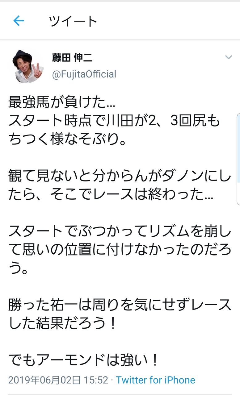 【競馬】藤田氏「最強馬が負けた………..でもこの馬は強い」