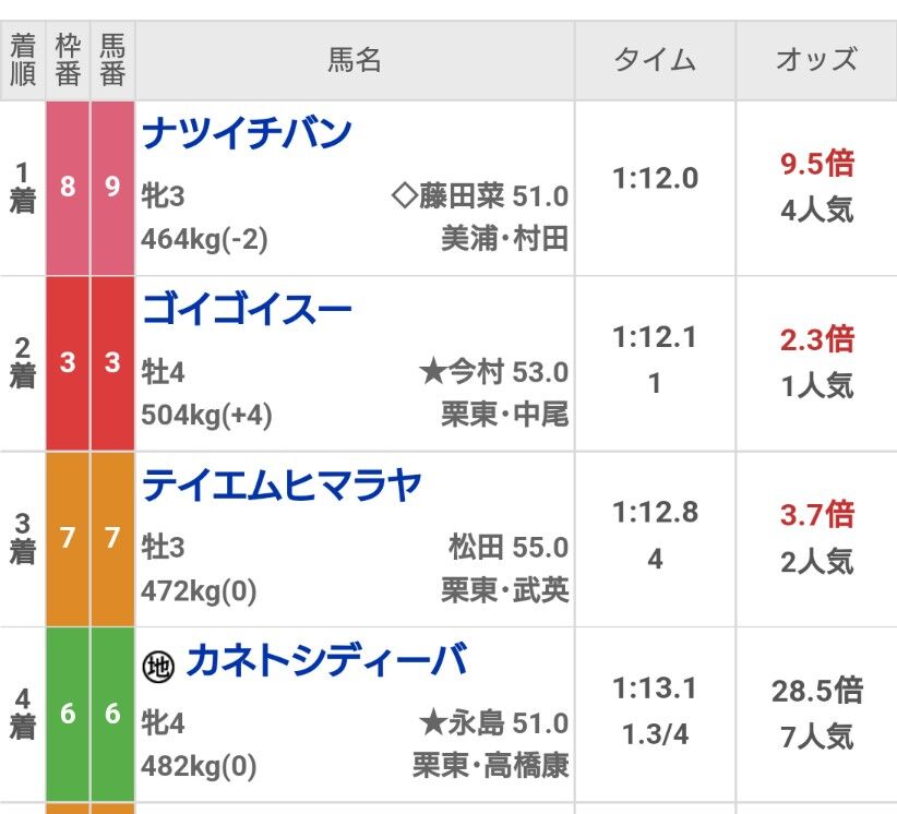 今週5勝はすると思ってたのに軽斤量逃げでしか勝ってないの酷いな今村