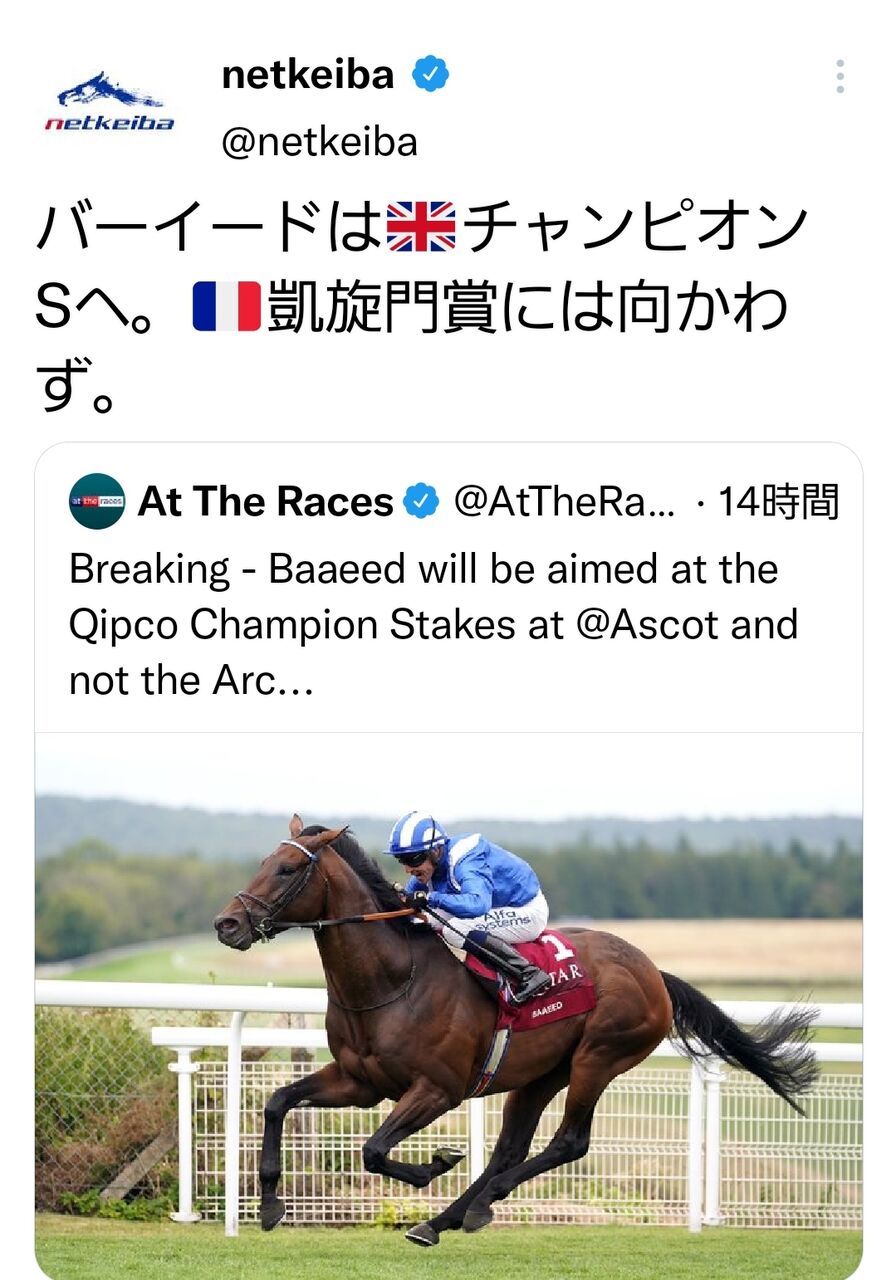 個人的にはドウデュースは凱旋門よりBCがプランの中に入ってるのが楽しみやな