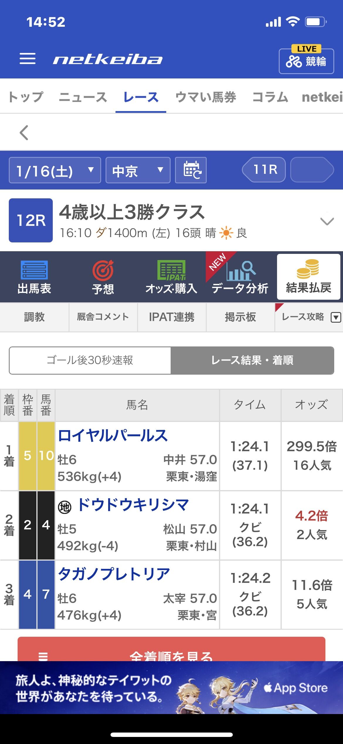 三連単いくらついたのかな