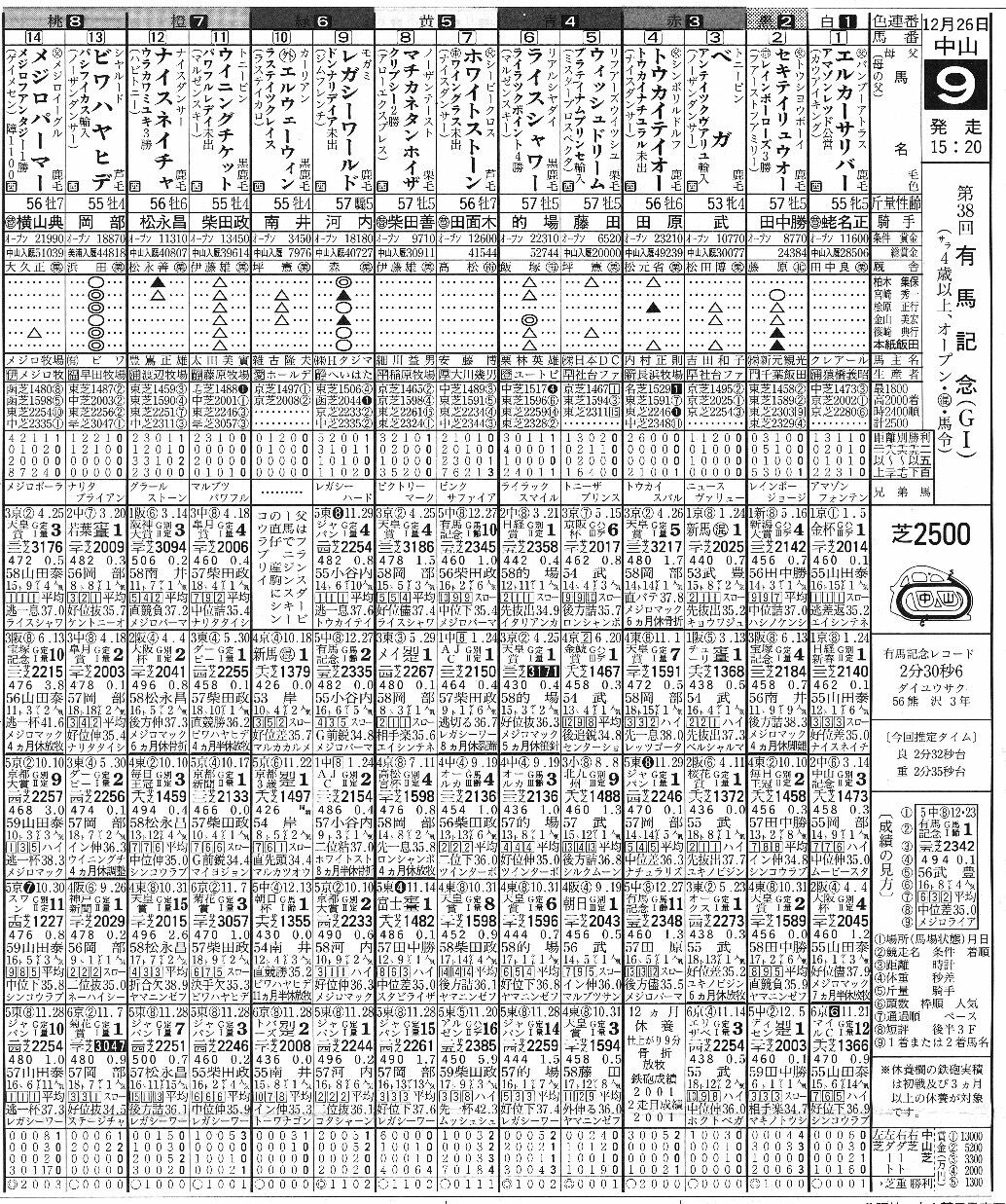 引用元: ・●それでは1993年有馬記念の出走表をご覧ください