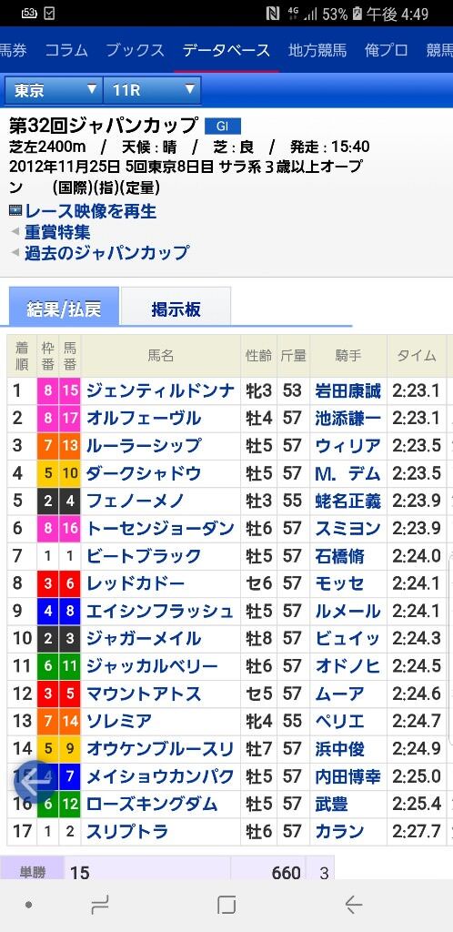 【競馬】2012年のジャパンカップのメンツ、ヤバすぎるwwwwwwwwww