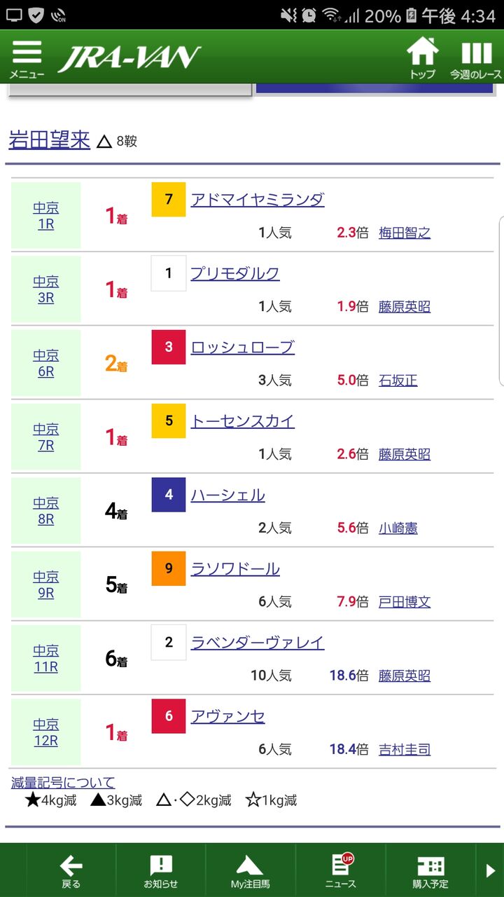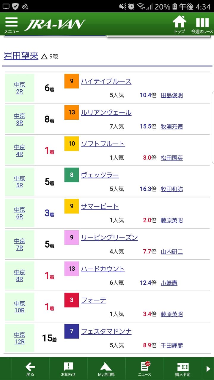 今週はルメール、武はサウジか。ワーワー川田が差を広げたな