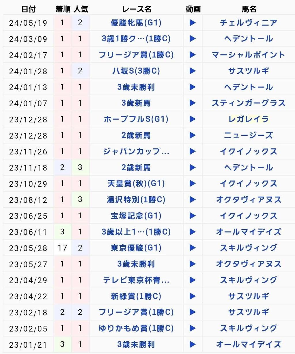 【競馬・ダービー】2023年以降 ルメール×キムテツ 芝2000以上 16-2-2-1→これ・・・・