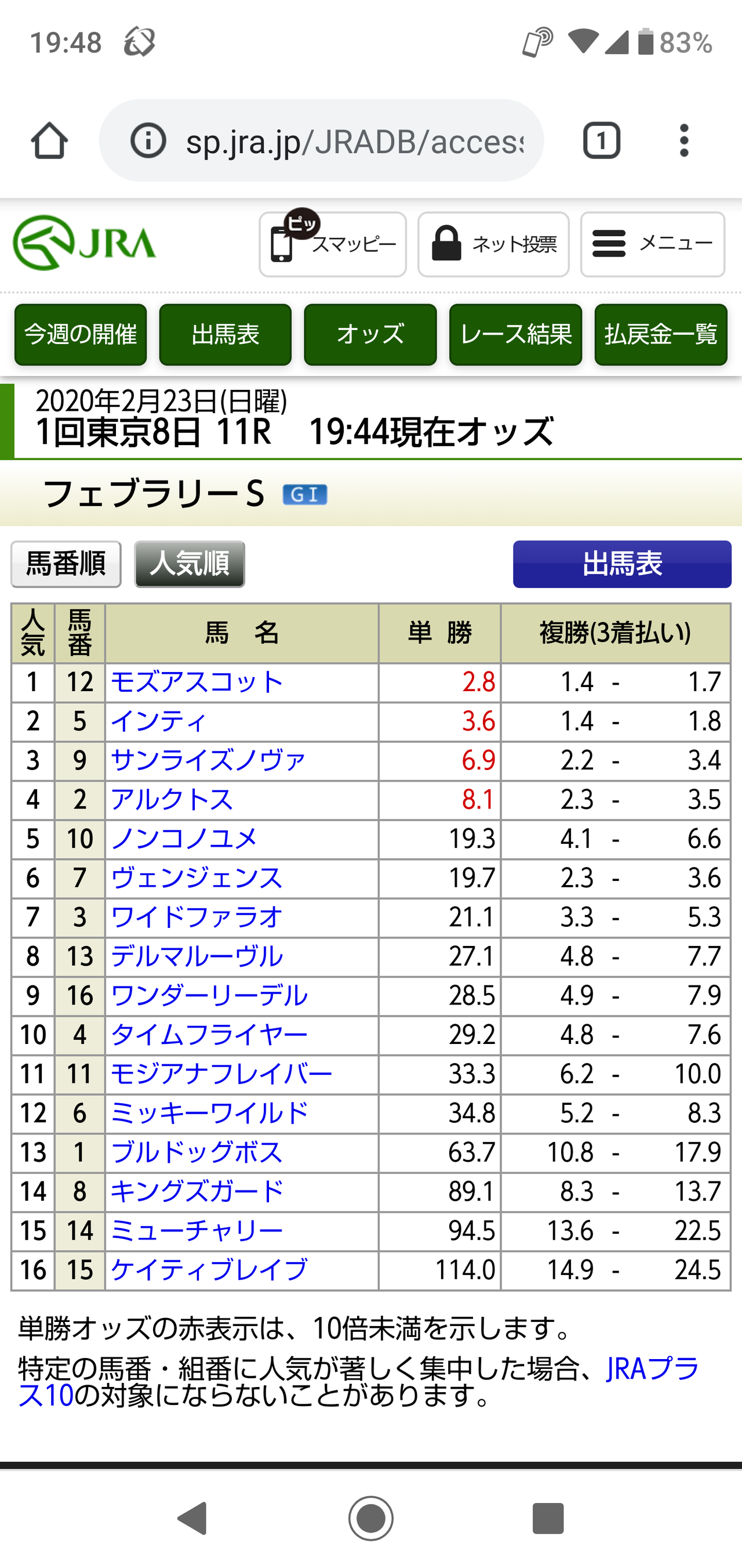 【競馬・フェブラリーS】ケイティブレイブが殿人気wwwwww